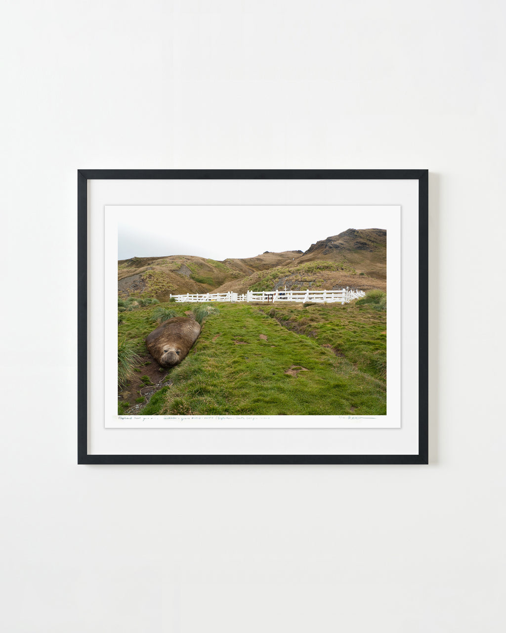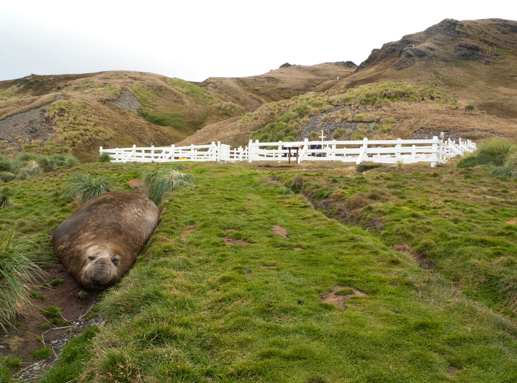 Elephant seal guarding Shackleton's grave #0312-40150 (Grytviken, South Georgia Rachel Sussman